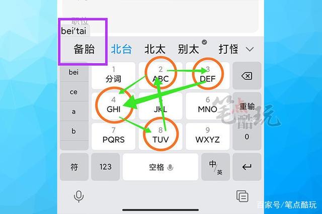 为什么234824代表“备胎”,你打开手机键盘,在汉语拼音九宫格输入法下,按照顺序点击234824,输入法一般会直接给出第一个候选词“备胎”。