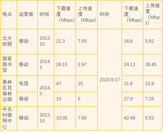 当然,也有一些地方存在2020年下载速率更快的情况。比如在中关村银网中心,移动2013年4G下载速率为33.05Mbps,而2020年为42.49Mbps。