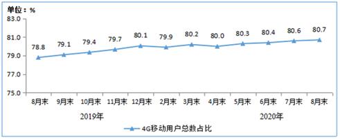 工信部最新数据显示,截至8月末,4G用户数为12.9亿户,同比增长2.6%,在移动电话用户总数中占比为80.7%。