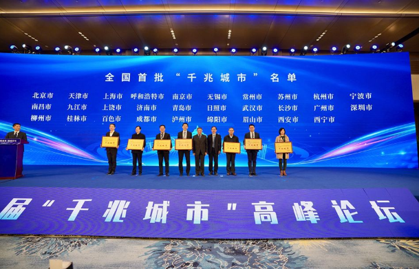 在与会代表的共同见证下,我国首批“千兆城市”建设成果正式发布。包括北京、天津、上海、呼和浩特、南京、无锡、常州、苏州、杭州、宁波、南昌、九江、上饶、济南、青岛、日照、武汉、长沙、广州、深圳、柳州、桂林、百色、成都、泸州、绵阳、眉山、西安、西宁在内的29个城市获评“千兆城市”。