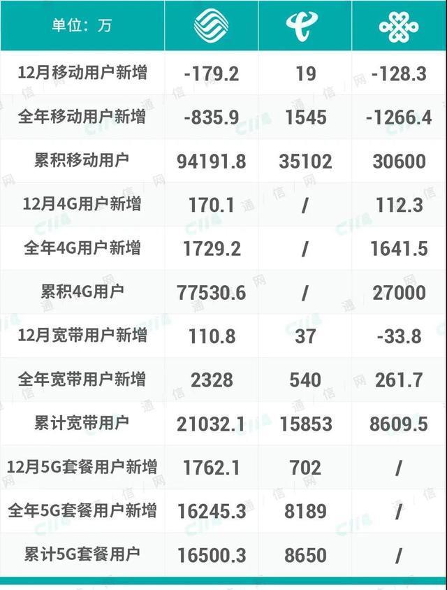 随着三大运营商公布了2020年的数据,真的是一家欢喜,两家愁!