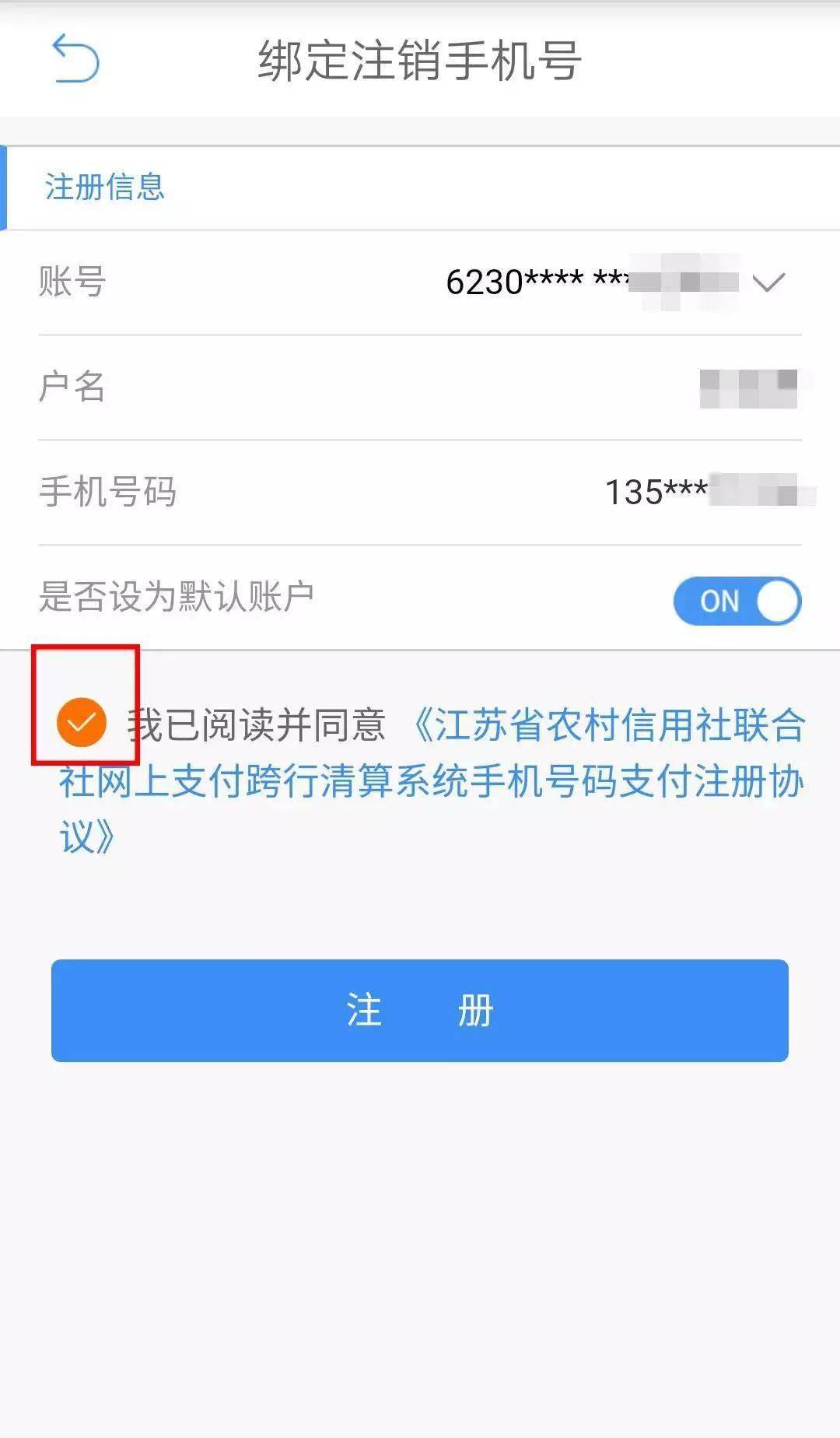 1.客户在江苏农村商业银行系统范围内一个手机号码只能绑定一个账户,即,若您在多家农商银行有账户时,一个手机号码只能绑定某一农商银行的一个账户。