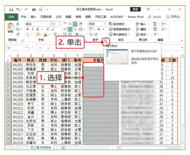 第一步、打开“员工基本信息表.xlsx”工作表,选中I2:I23单元格区域,切换至“开始”选项卡,单击“数字”选项组中的对话框启动器按钮。湛江手机选号 汕头手机选号 手机号码