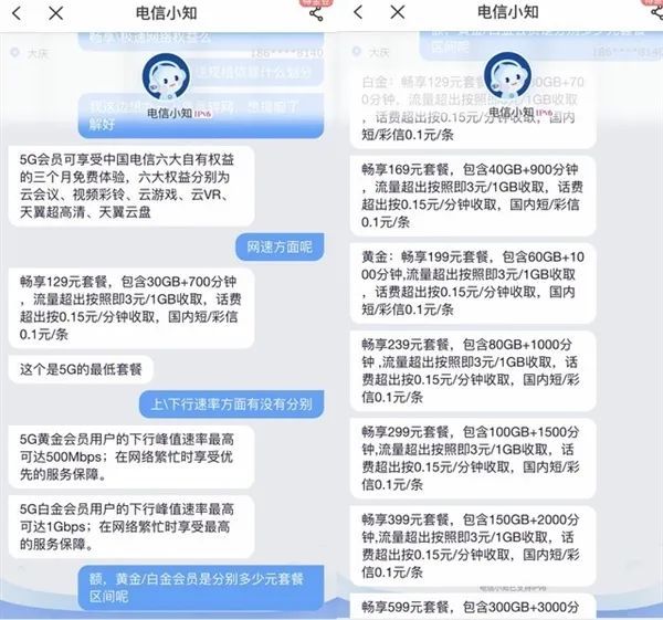 因而想要升级5G的用户不妨在升级前先向客服询问清楚不同资费能够享受的速率的区别。
