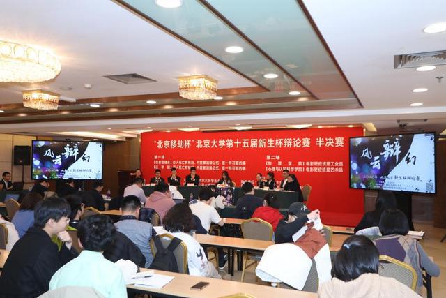 11月22日,由北京移动动感地带和北京大学学生会联合举办的"北京移动杯"北京大学第十五届新生杯辩论赛在北大英杰交流中心-月光厅进行半决赛,最终心理与认知科学学院、信息管理系在24支参赛队伍中脱颖而出,即将在本周末的总决赛中角逐冠军!
