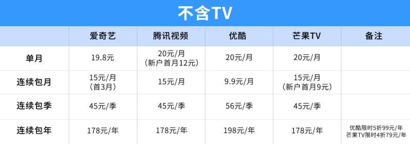 而从各家会员费用来看,连续包月一般15元/月左右,单月来算费用更高,按照包年的费用每个平台一年也要将近200元,而对于像是我们这样每年都有各大视频会员需求的人来说,一年下来需要花费700多元,这还不包括TV的价格。